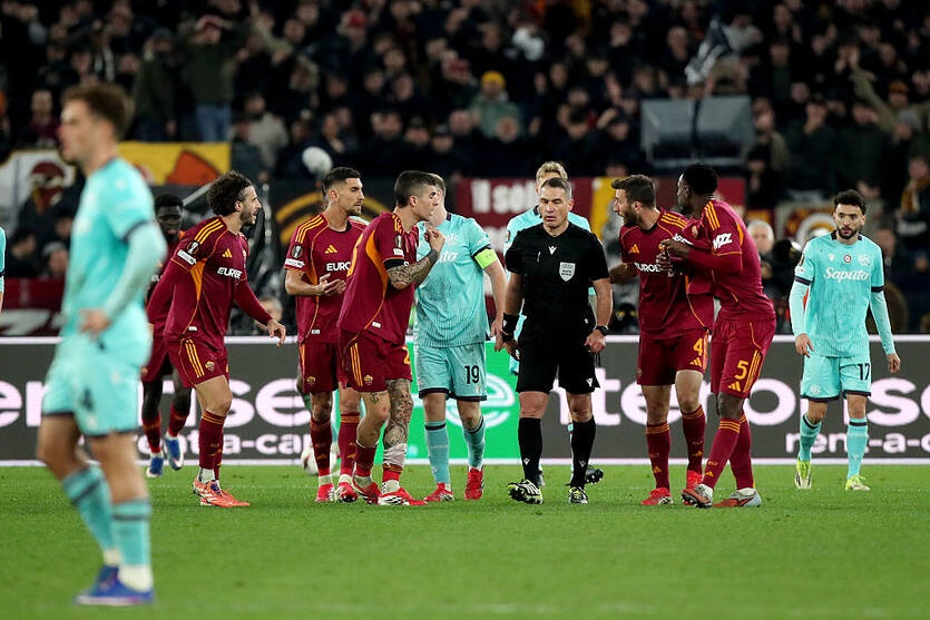 На 44-й хвилині зустрічі захисник житомирської команди Едуард Сарапій у боротьбі потягнув італійця за волосся, і той відповів ударом ліктем, за що був покараний прямою червоною карткою.